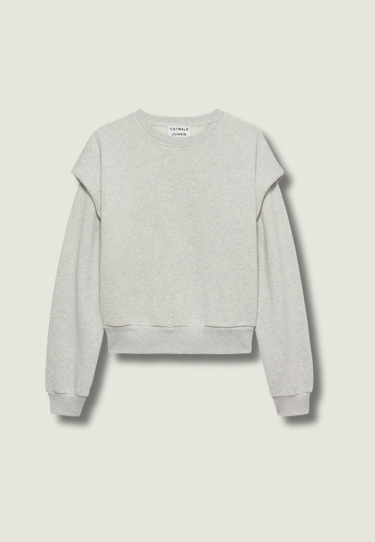 CATWALK JUNKIE Folded Shoulder Sweater | Light Grey Melange