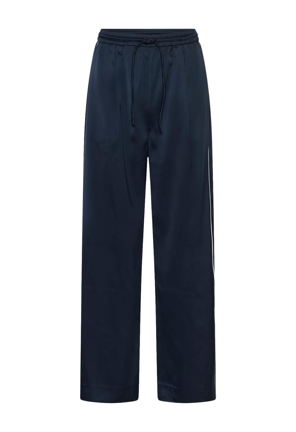 Wijde broek met relaxed silhouet, gladde en licht glanzende uitstraling. Elastische tailleband met trekkoord en extra lange pijpen voor moderne flair.