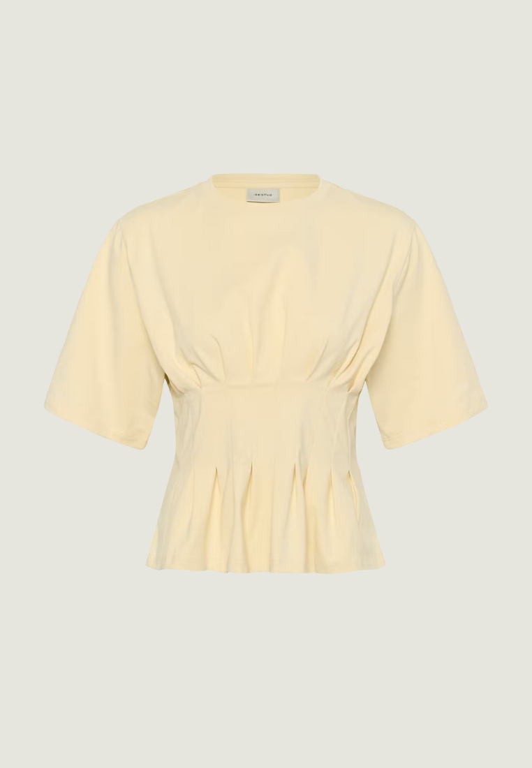 Deze damesblouse heeft een getailleerde pasvorm, ronde hals en half lange mouwen. Plissé details zorgen voor een stijlvolle uitstraling. Comfortabel en veelzijdig draagbaar.