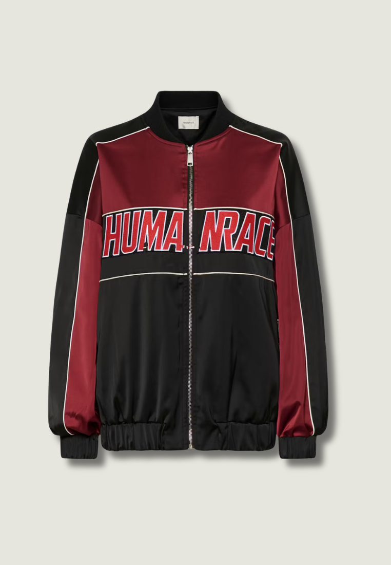 Bomberjack met losse boxy fit, gladde satijn-finish, ribkraag en manchetten, ritssluiting aan de voorkant.