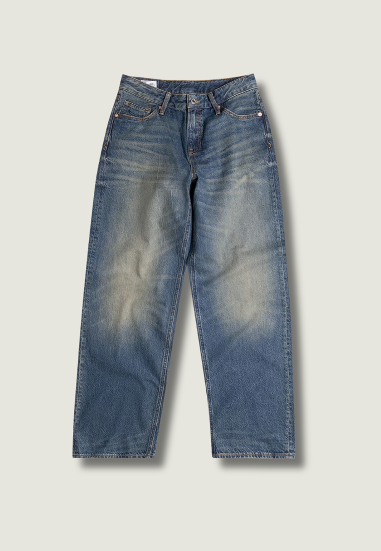 De JOAN jeans heeft een hoge taille en rechte pijpen die vanaf de enkels iets uitlopen, waardoor een flatterend silhouet met een retro-uitstraling ontstaat. Als je het item baggy wil dragen, neem dan je eigen maat. Als je het met een normale of hoge taille wilt dragen, bestel dan 1 of 2 maten kleiner.
