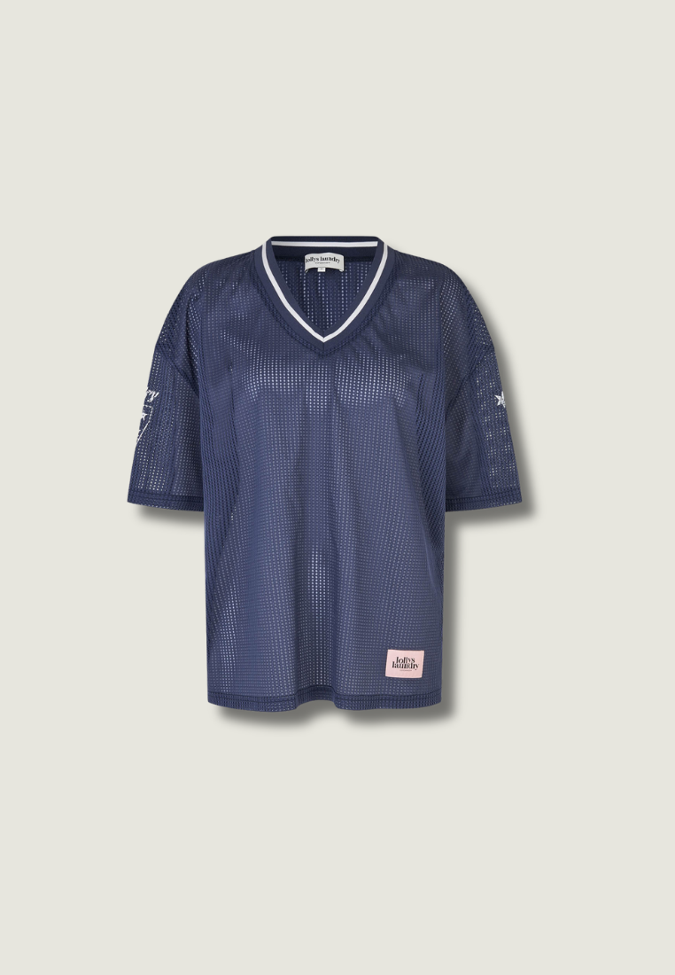 Het Kamilla shirt is een sportief shirt met een relaxte pasvorm gemaakt van lichtgewicht meshstof, v-hals, korte mouwen en opdrukken. Combineer hem met de Bille short voor een complete look.
